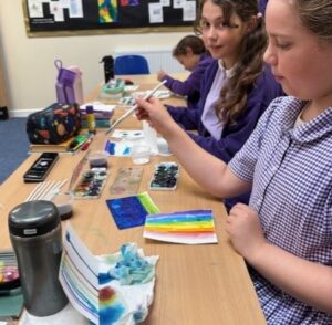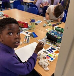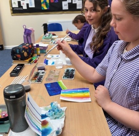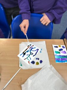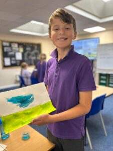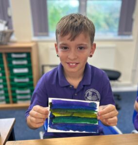 Ocean Class had a chance to experiment with high-pigment paints on cartridge paper this week. They explored the effects they could create with water, salt, chalk and pen.