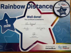 Last Sunday, Elsa took part in a gymnastics competition between West Sussex clubs. She did very well and won two medals — one for second place and one for third place. Elsa was also awarded first place in the design competition for creating a gymnastics leotard. On top of that, Elsa has also recently achieved her swimming certificate for completing one mile, which is a great milestone for her.