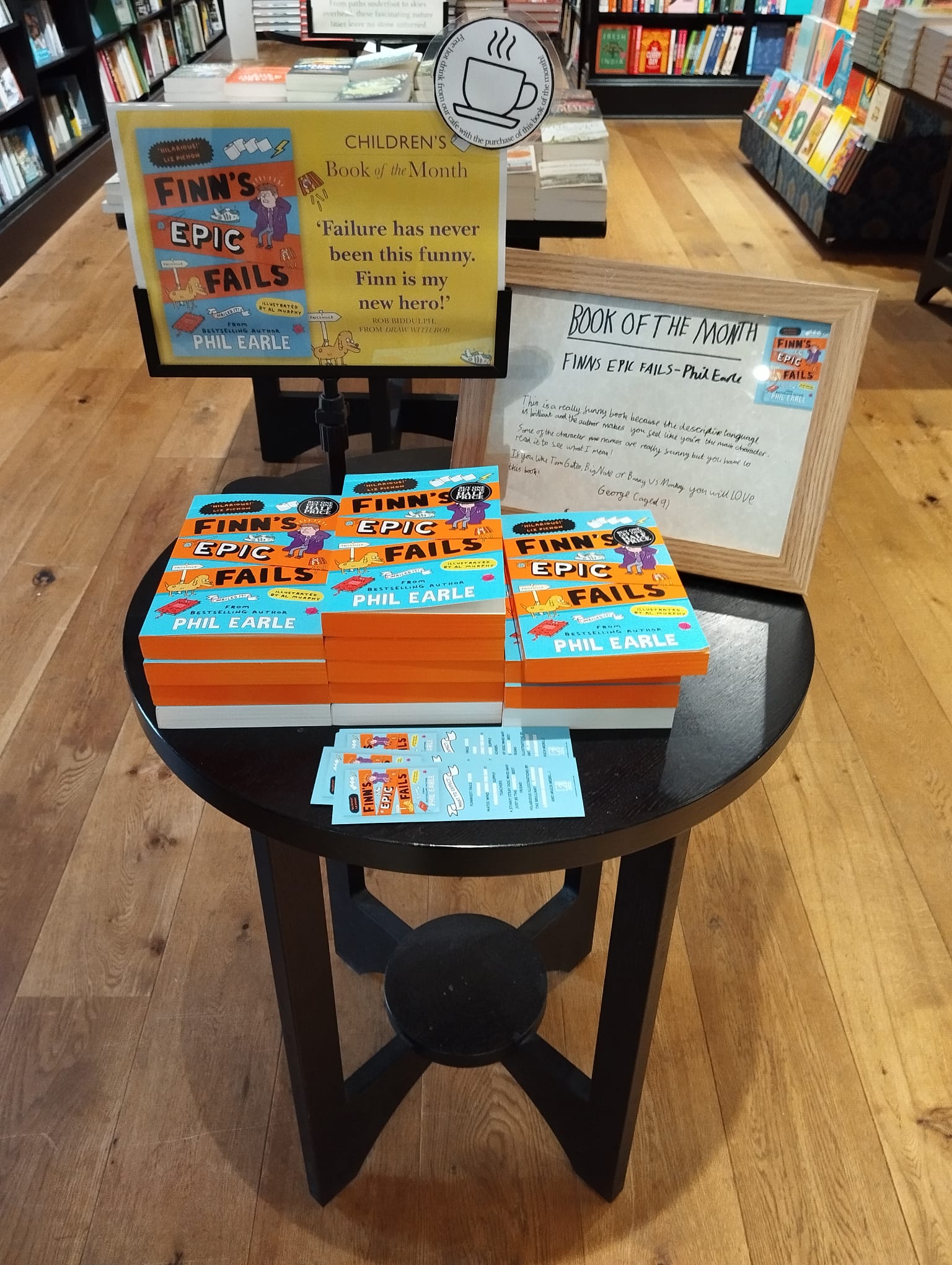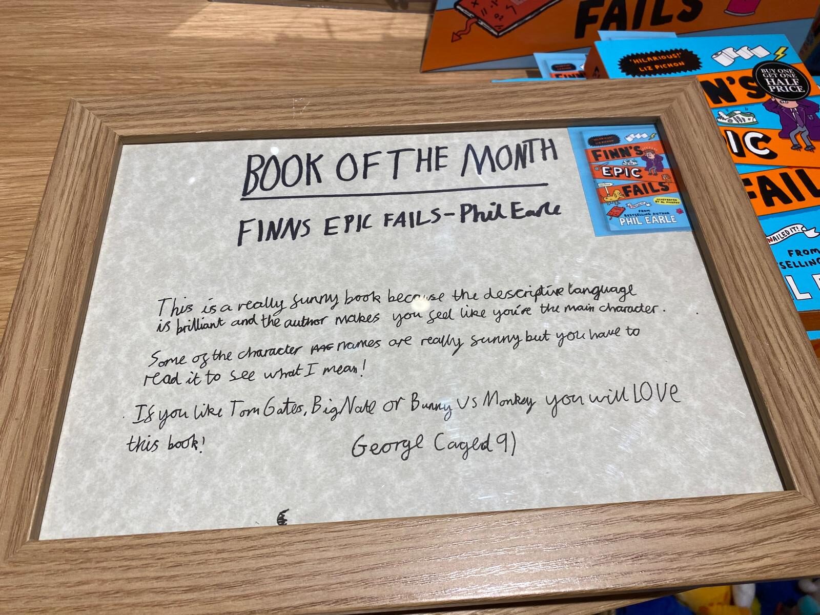 George is an avid reader and is always reading new books. George’s dad works for Waterstones and asked George if he would review a new book for the Brighton store. George jumped at the chance! Please see below photos of the book display, including George’s handwritten review.